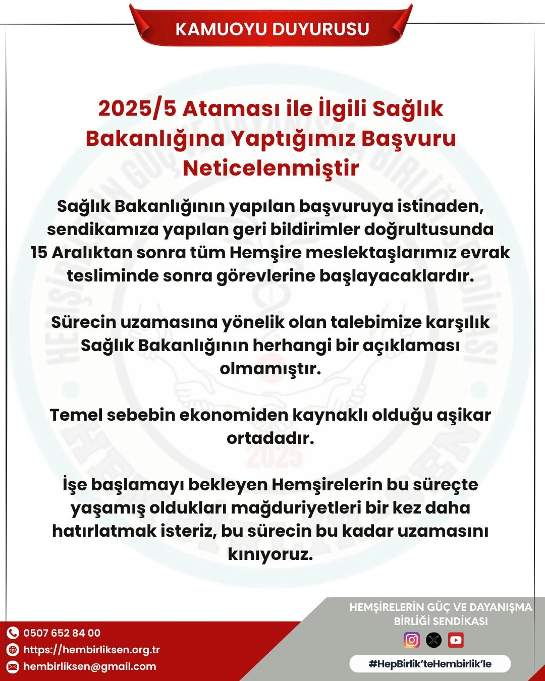 HEMBİRLİK-SEN, Hemşirelerin ve Sosyal Hizmetler Çalışanlarının Hak ve Menfaatlerini Korumak ve Geliştirmek İçin Kurulmuş Bağımsız Bir Sendikadır