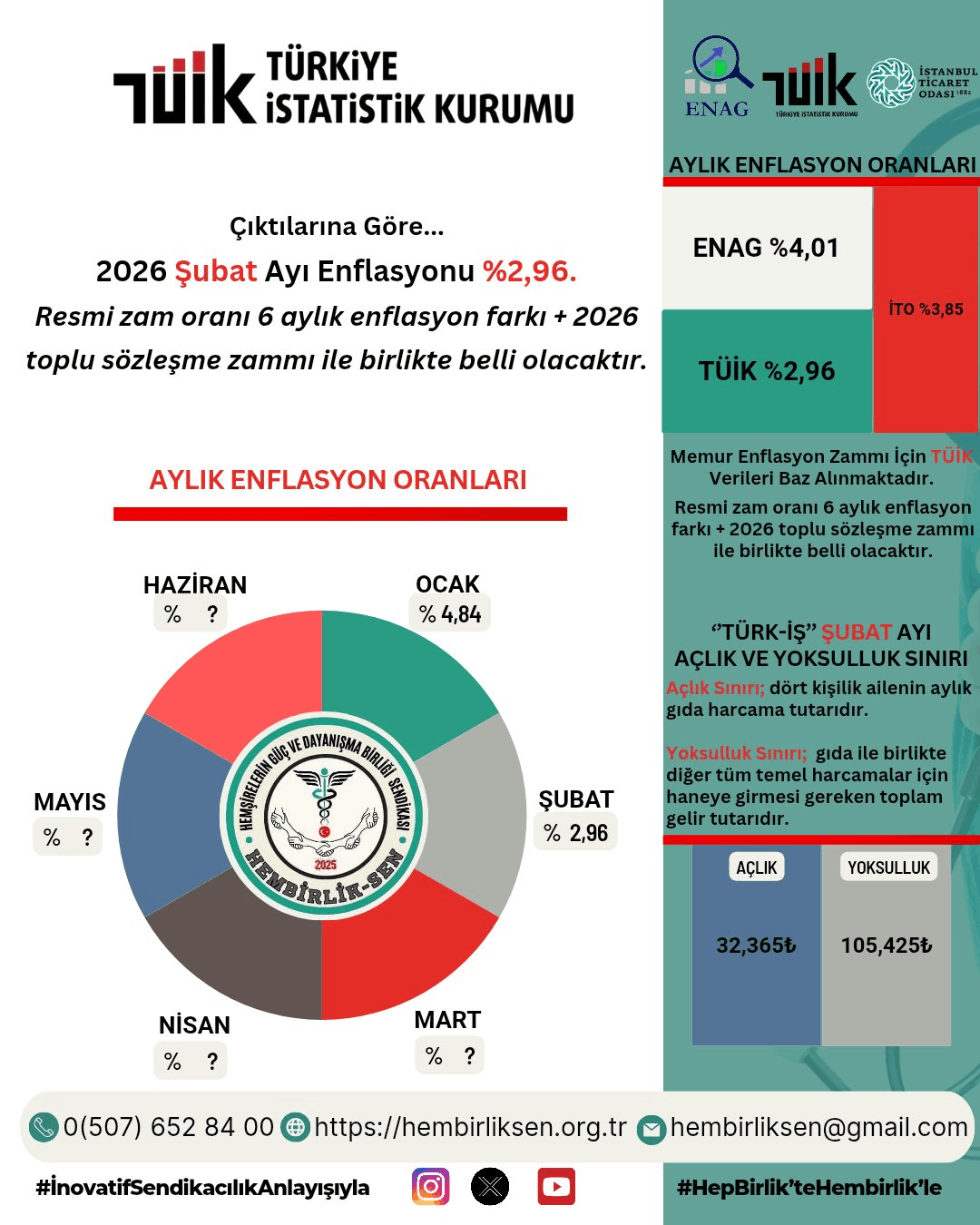 Aylık Enflasyon Oranları – Açlık Sınır – Yoksulluk Sınırı