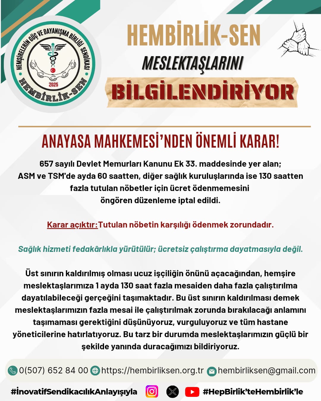 Hembirlik-Sen Meslektaşlarını Bilgilendiriyor: Anayasa Mahkemesi’nden Önemli Karar!