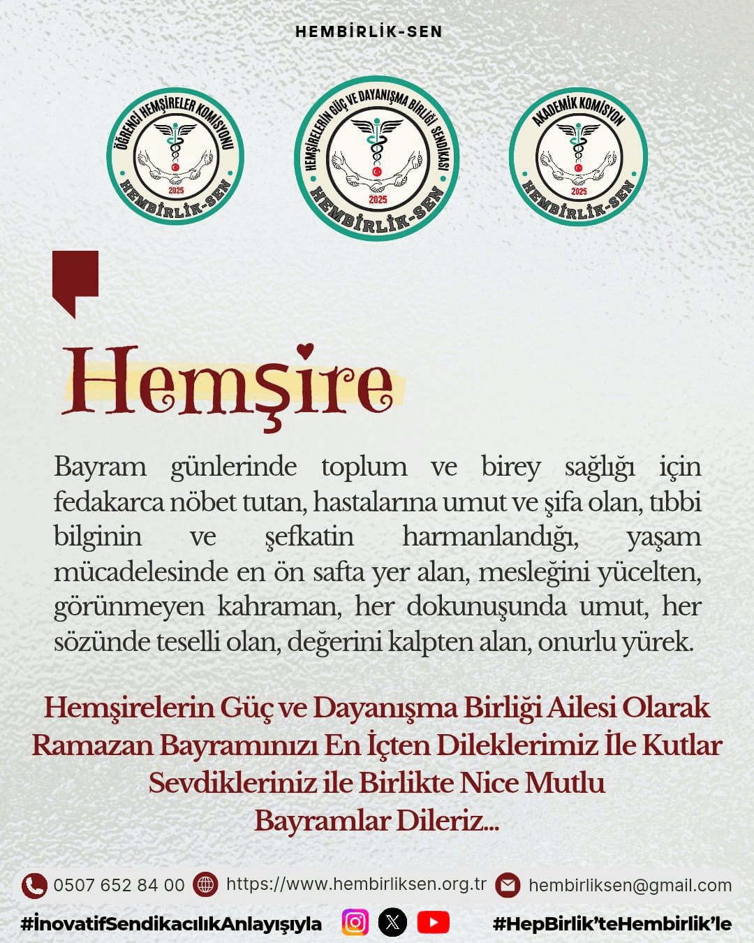 HEMBİRLİK-SEN Olarak Ramazan Bayramınızı En İçten Dileklerimiz İle Kutlarız