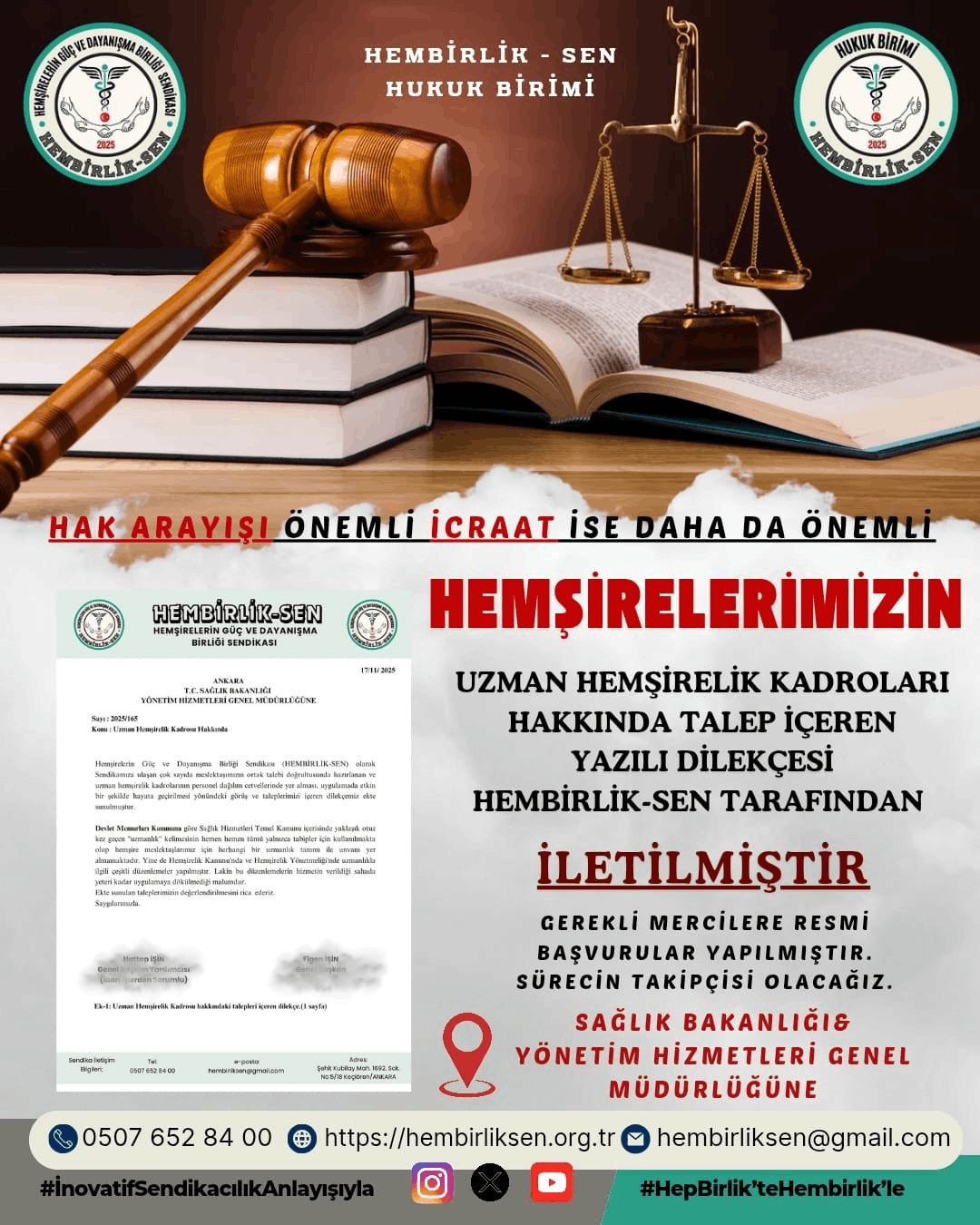 Uzman Hemşirelik Kadroları Hakkında Talep İçeren Yazılı Dilekçesi Hembirlik-Sen Tarafından İletilmiştir